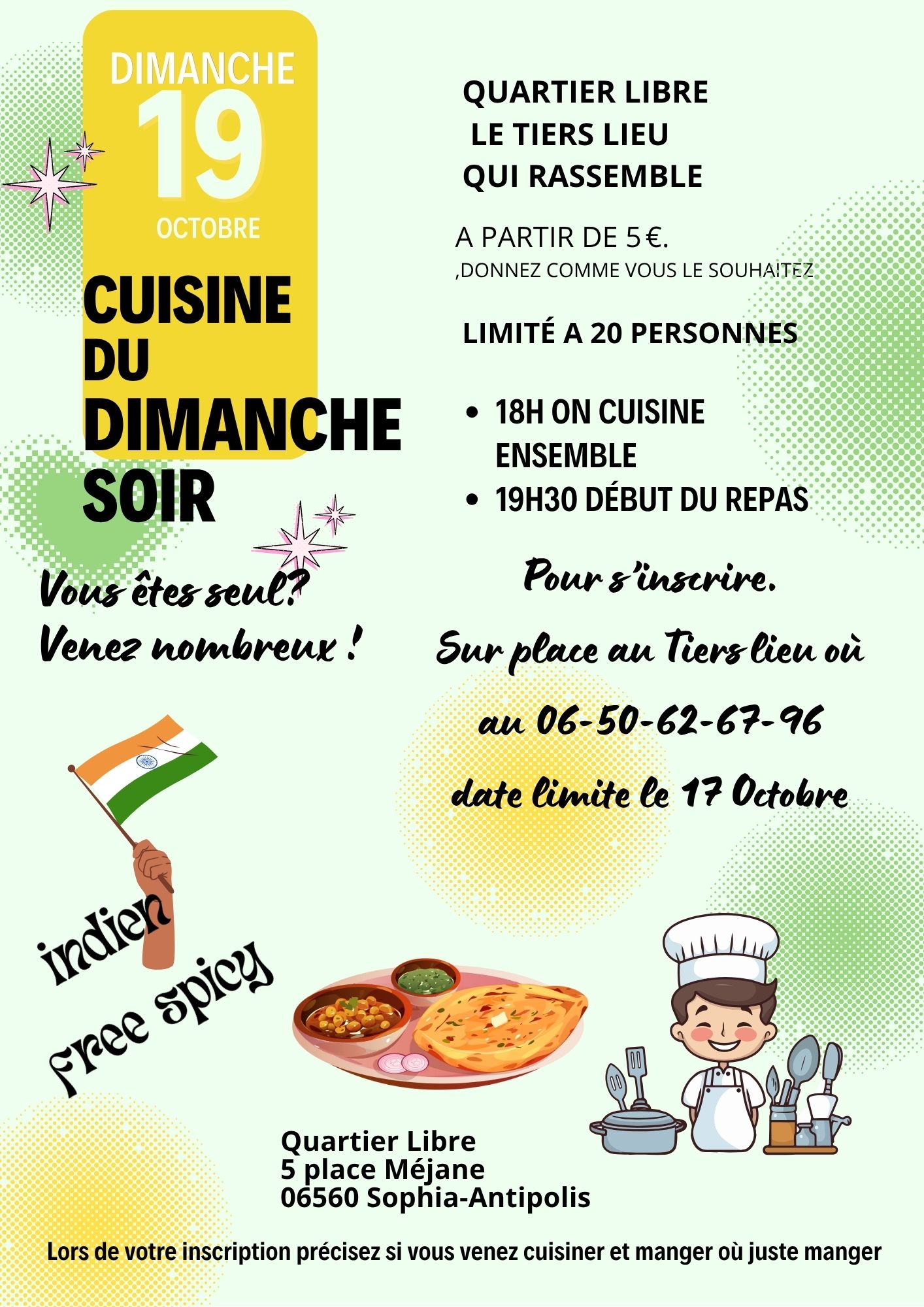 Avec l’association NATYARAMABAM Démonstration de danse indienne traditionnelle suivie d'un partage autour d'amuse bouche Participation libre ppur les artistes et les amuse bouche Une autre séance aura lieu mercredi 5 Novembre